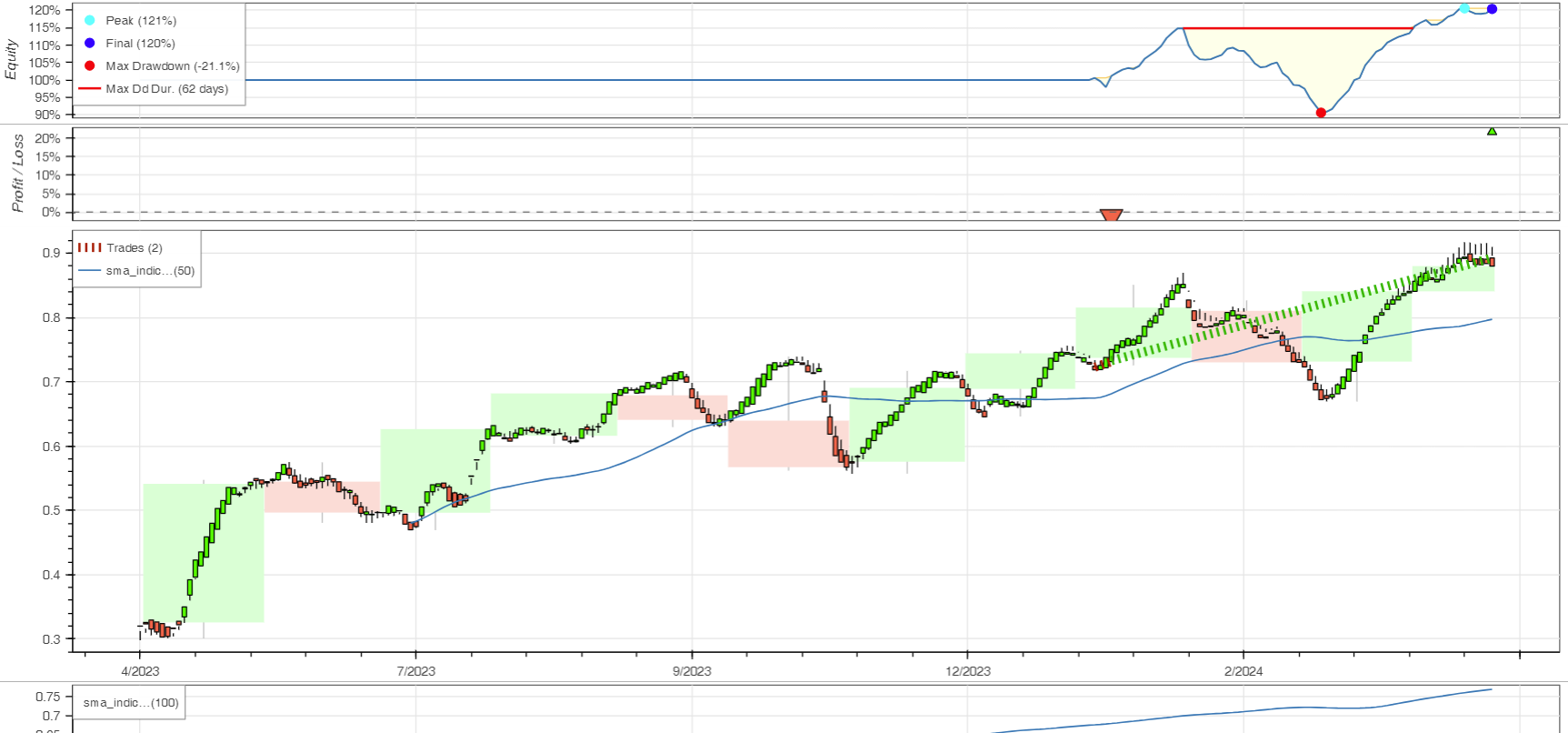 Trades는 거래 횟수인데, 거래 횟수도 적고 SMA(Simple Moving Average)값도 영향을 미칠 정도로 역할을 하지 못했다.