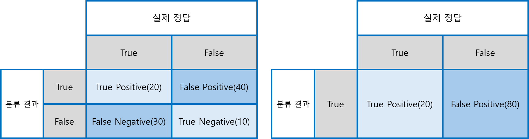 precision과 recall은 모두 모델이 True인 정답에 대해 True를 에측하는 것에 관심이 있다. 그런데 왜 지표가 두 개일까?