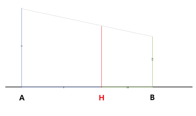 점A에서 길이A만큼 떨어진 거리(=점B에서 길이B만큼 떨어진 거리)에서 맞은편 변에 내린 선분이 조화평균이다.