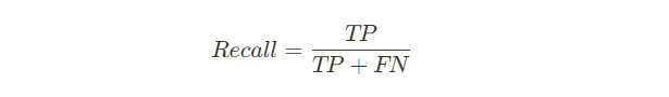 재현률(recall)이란 실제로 True인 것중 모델이 True로 예측한 것의 비율이다