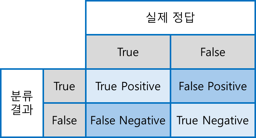 - True Positive(TP) : 실제 True인 정답을 True라고 예측 (정답~)