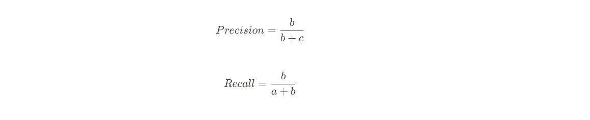 → Recall은 분모인 a가 감소하므로 100%가 됨 (A가 B의 부분집합이 되어버림 = d, a 모두 c에 흡수됨)