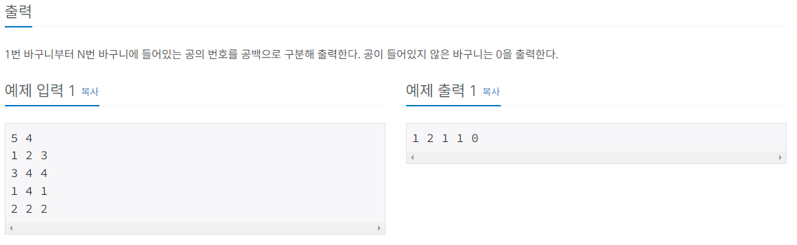 1. N, M 을 입력받아 바구니 개수와 반복 횟수 설정