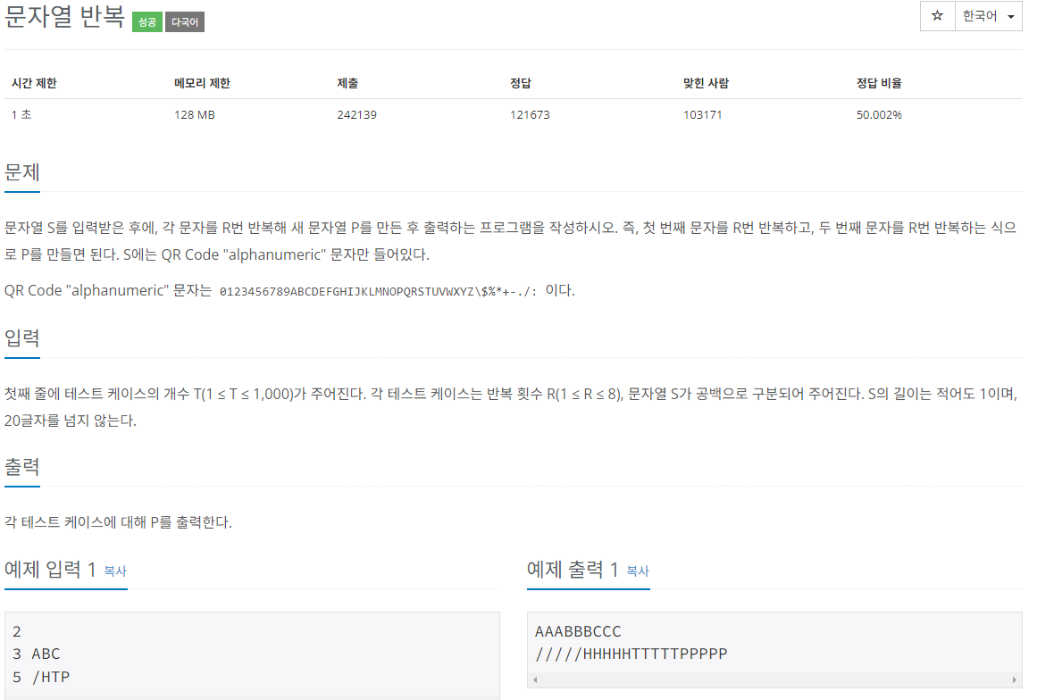 3. 입력받은 반복 횟수만큼 문자를 출력한다.
