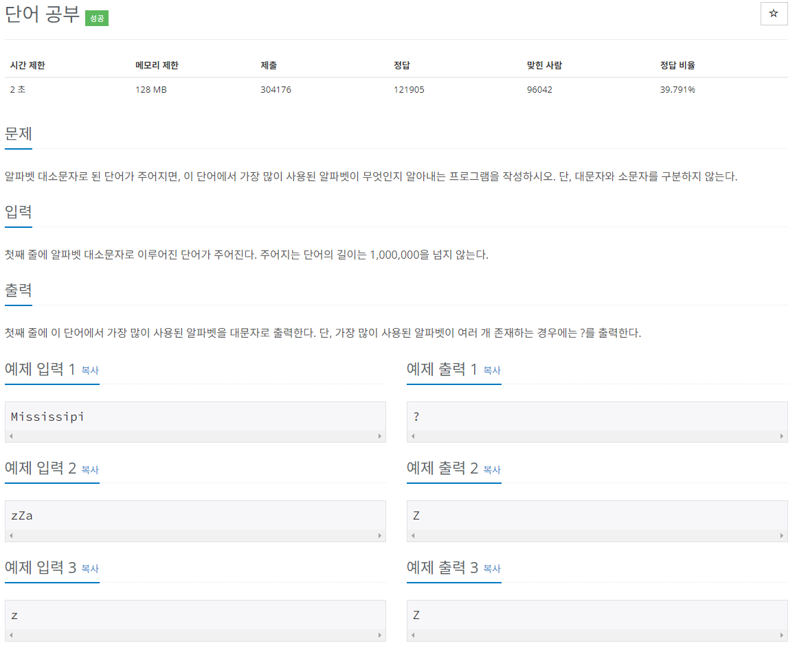 map을 처음 써 봐서 코드가 너무 지저분하다. 플래그를 통해서 최대인 글자수의 중복을 확인 했는데, 다른 방법도 생각해 봐야 겠다.